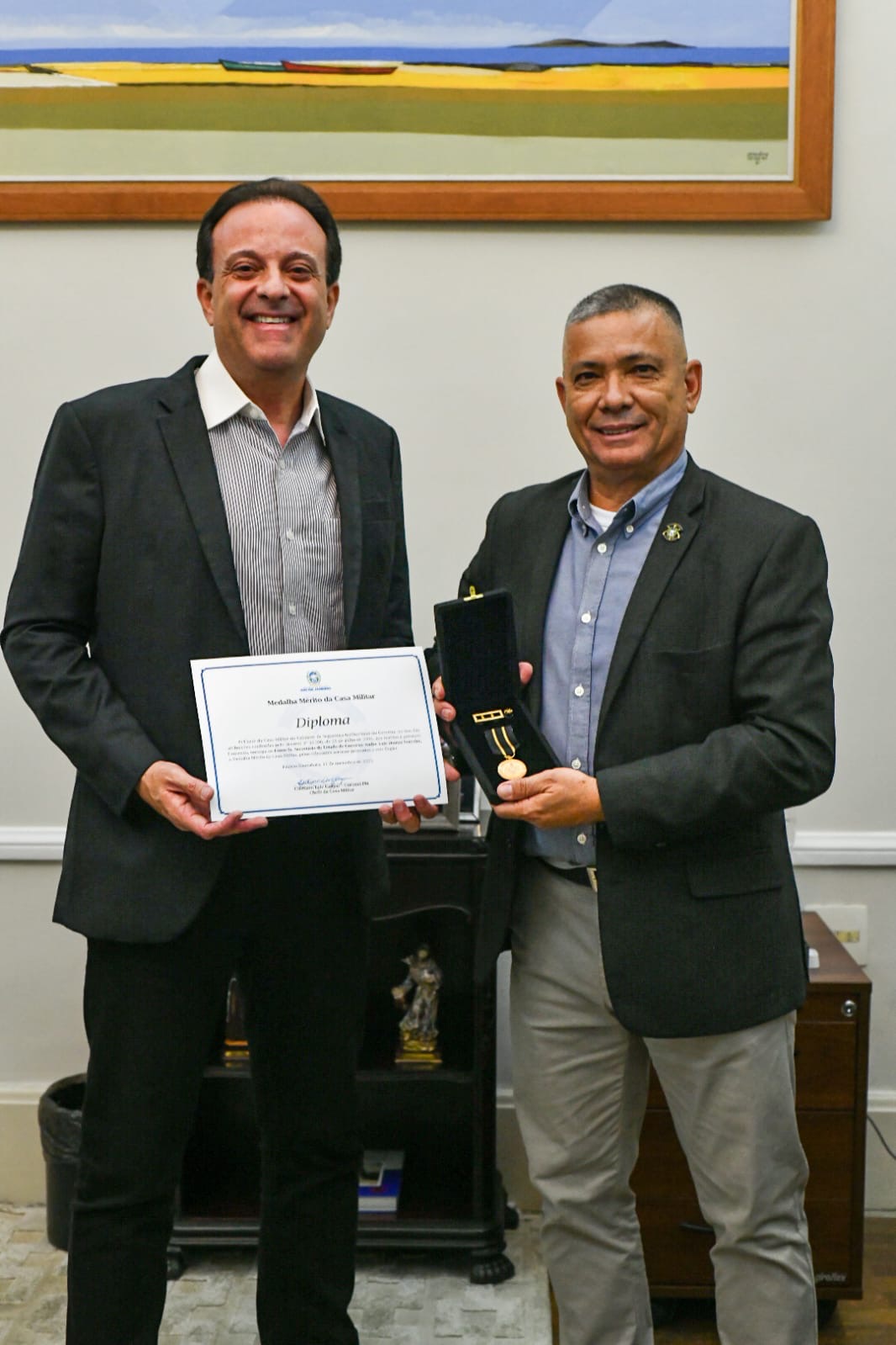 Nesta segunda-feira, 1, o secretário de Governo do Rio de Janeiro e pré-candidato ao Senado por Sergipe, André Moura, foi condecorado com a Medalha Mérito da Casa Militar, entregue pelo subsecretário Militar do Gabinete de Segurança Institucional (GSI/RJ), coronel PM Cristiano Luiz Gaspar. A honraria, criada em 2006, destaca personalidades e militares que prestam serviços relevantes à Casa Militar e reforça o reconhecimento ao trabalho desenvolvido por André na articulação das políticas públicas de segurança do estado.